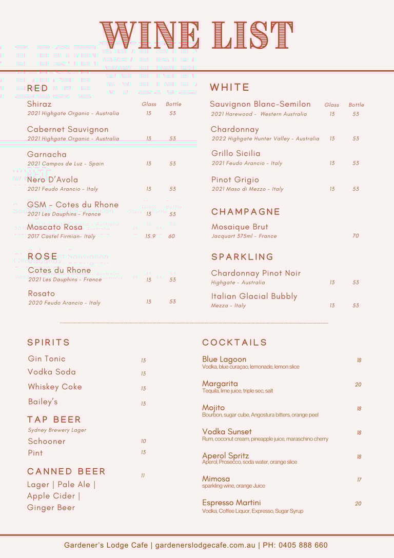 Reserve your cozy spot at Gardener's Lodge Cafe for a relaxing meal.
